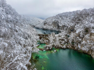 Jeziora Plitwickie zimą – cud natury w śnieżnej scenerii